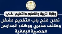 في إطار تكليفات القيادة السياسية للتوسع في نموذج المدارس المصرية اليابانية وتعزيز الكوادر القيادية في هذا القطاع، أعلنت وزارة التربية والتعليم والتعليم الفني عن فتح باب التقديم لشغل وظائف مديرين ووكلاء في المدارس المصرية اليابانية، وذلك تزامنًا مع التوسع في عدد المدارس وزيادة عدد المدارس التي ستدخل الخدمة بداية من العام الدراسي 2026/2027.