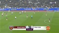 وجاء الشوط الأول متوازنًا إلى حد كبير، حيث تبادل الفريقان السيطرة على وسط الملعب دون أن يتمكن أي منهما من ترجمة الفرص القليلة إلى أهداف. وست هام يونايتد ظهر بشكل أفضل نسبيًا في بعض فترات الشوط الأول، ونجح في تهديد مرمى مانشستر يونايتد بتسديدة قوية من خارج منطقة الجزاء، تصدى لها الحارس سينس لامينس ببراعة، ليحافظ على نظافة شباكه. في المقابل، حاول مانشستر يونايتد تنظيم هجماته عبر التمريرات القصيرة والتحركات الجماعية، لكنه افتقد للدقة في اللمسة الأخيرة أمام المرمى.