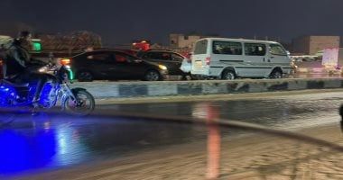 فيما تقوم الجهات المختصة على رفع بقع الزيت لمنع حدوث أي حوادث علي الطريق وعرقلة قائدي السيارات.