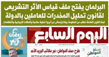 تنشر اليوم السابع فى عددها الصادر غدا، تفاصيل هامة حول العديد من الأحداث الجارية على الساحتين الداخلية والخارجية: البرلمان يفتح ملف قياس الأثر التشريعى لقانون تحليل المخدرات للعاملين بالدولة