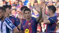 وجاء الهدف الأول لبرشلونة في الشوط الأول، ليعطي الفريق دفعة معنوية كبيرة ويغير مجرى اللقاء لصالحه، قبل أن يضيف النجم الهولندي فرينكي دي يونج الهدف الثاني في الدقيقة الثانية والثلاثين بعد تمريرة مميزة من جواو كانسيلو، ليصبح الفريق الكتالوني متقدمًا بهدفين نظيفين، مع سيطرة شبه كاملة على الكرة وإيقاع اللعب.