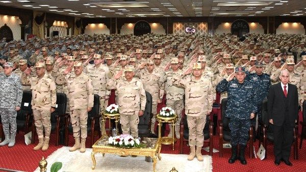 وألقى الفريق أول عبد المجيد صقر القائد العام للقوات المسلحة وزير الدفاع والإنتاج الحربى كلمة نقل خلالها تحيات وتقدير الرئيس عبد الفتاح السيسي رئيس الجمهورية القائد الأعلى للقوات المسلحة وإعتزازه بالجهد الذى يبذله رجال القوات المسلحة فى صون مقدرات الوطن، مؤكداً ضرورة قيام القادة والضباط على كافة المستويات بالمحافظة على مستوى الإستعداد القتالى لوحداتهم والإهتمام بالمقاتلين بإعتبارهم الركيزة الأساسية لقواتنا المسلحة ليكونوا قادرين على تنفيذ مختلف المهام الموكلة إليهم بكفاءة وإتقان وروح معنوية عالية، وكذلك أهمية التسلح بالوعى المستنير لما تشهده المرحلة الحالية من تحديات للحفاظ على أمن الوطن وسلامة أراضيه .