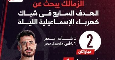 عزيزي الزائر أهلا وسهلا بك في موقع نيوز مصر نقدم لكم اليوم الزمالك يبحث عن الهدف السابع في شباك كهرباء الإسماعيلية الليلة.. إنفوجراف - بوابة نيوز مصر