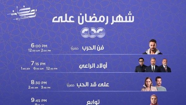 عزيزي الزائر أهلا وسهلا بك في موقع نيوز مصر نقدم لكم اليوم تعرّف على موعد عرض مسلسلات رمضان على شاشة «cbc» - بوابة نيوز مصر