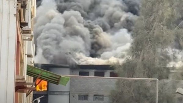 وتبين تصاعد سحابات سوداء من الأدخنة جراء الحريق وأن النيران اشتعلت في أحد مصانع بالقطعة 178 امتداد الصناعية الثالثة.