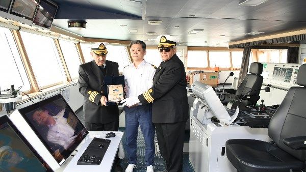 ووفقاً للبروتوكول المتبع من قبل هيئة قناة السويس في التعامل مع السفن التي تعبر القناة لأول مرة، أناب الفريق أسامة ربيع رئيس الهيئة، الربان عبد الرحمن فؤاد شاهين كبير مرشدين أول، والربان سعيد إمام كبير مرشدين أول للصعود على السفينة والترحيب بطاقمها، وتسليم هدية تذكارية لربان السفينة.