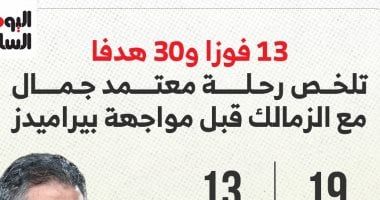 عزيزي الزائر أهلا وسهلا بك في موقع نيوز مصر نقدم لكم اليوم 13 فوزا و30 هدفا تلخص رحلة معتمد جمال مع الزمالك قبل لقاء بيراميدز.. إنفوجراف - بوابة نيوز مصر