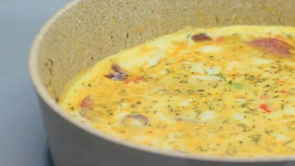 يضاف خليط البيض والجبنة الموتزاريلا، ثم تدخل فرنا ساخنا حتى تمام النضج، وتقدم ساخنة.