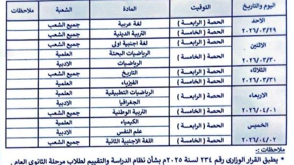 - يتم اداء امتحانات شهر مارس 2026 خلال اليوم الدراسي ويتم استكمال باقي اليوم الدراس بشكل طبيعي وفقا لجدول المدرسة