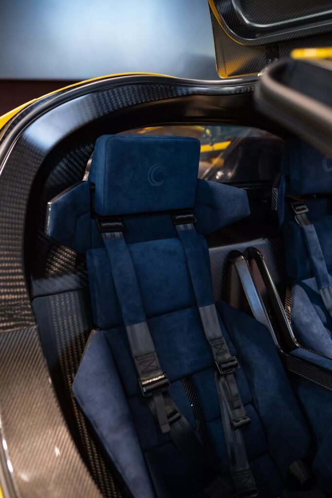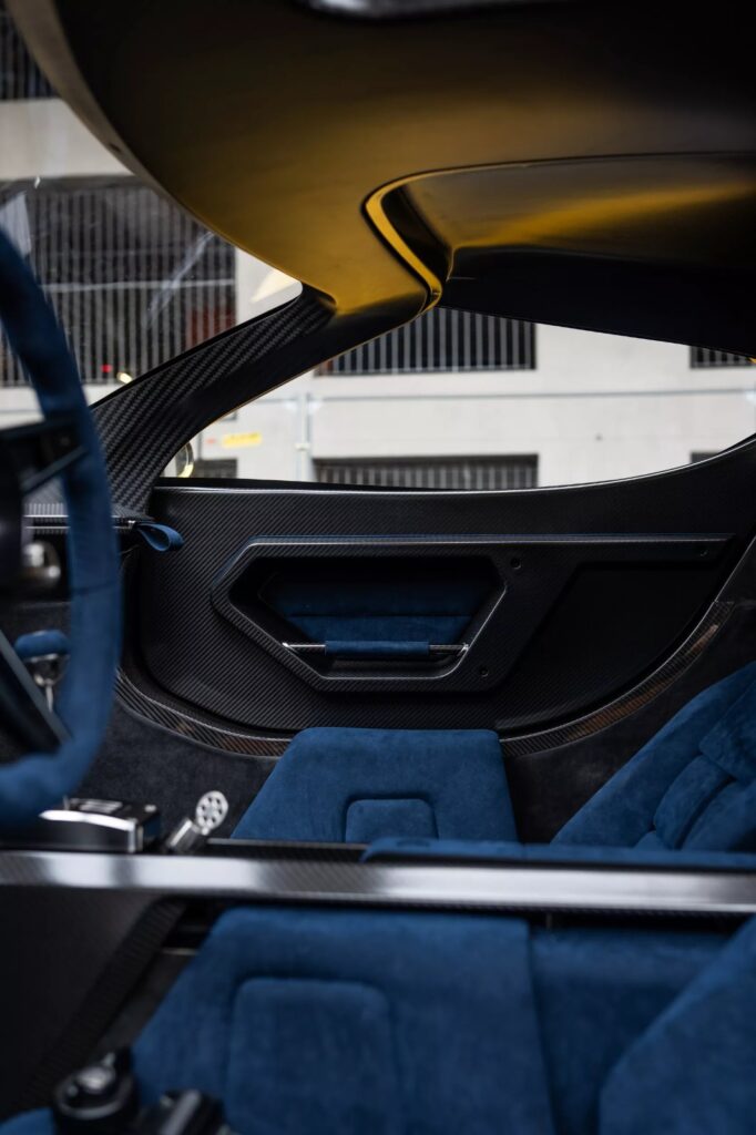 وتأتي بمقعدين رياضيين عصريين ومزيج من تنجيد من ألكانتارا باللون الأزرق وألياف الكربون الظاهرة بوضوح ما يمنح المقصورة مظهرًا متناسقًا وجذابًا.