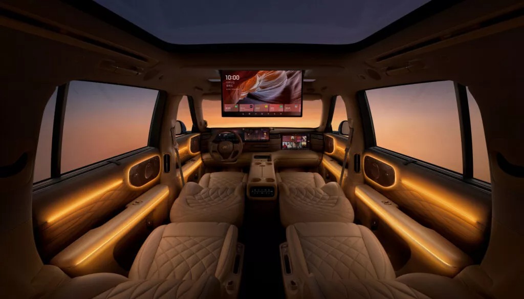 وسيحظى عشاق الصوتيات بتجربة مميزة مع نظام صوتي من بانغ آند أولفسن (Bang & Olufsen)، في حين يحصل جميع الركاب على مقاعد بخاصية التدليك ونظام تدفئة أرضية. كما لم تُهمل آي إم موتورز (IM Motors) ركاب الصف الخلفي، إذ وفّرت لهم شاشة بدقة 5K قياس 27 بوصة تنسدل من السقف.