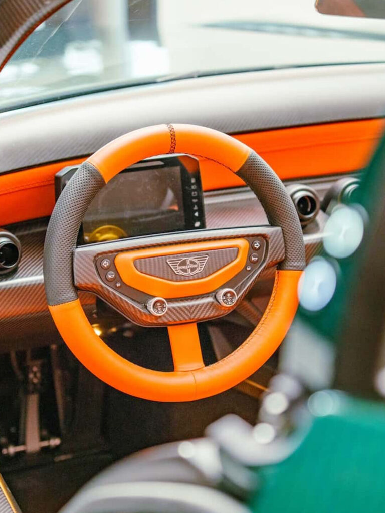 تقريبا كل ما يظهر في السيارة، بما في ذلك الأجنحة مصنوع من ألياف الكربون، ما يعزز الطابع الفاخر ويساعد في تقليل الوزن وزيادة الصلابة، كما تحتوي السيارة على أجزاء معدنية مطبوعة بتقنية الطباعة ثلاثية الأبعاد، من بينها أطراف نظام العادم.