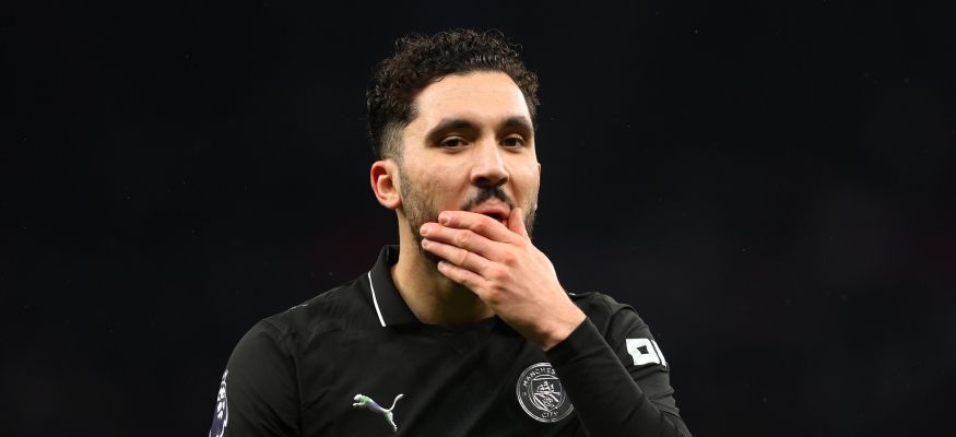 ريان شرقي لاعب مانشستر سيتي يسجل هدفا في التعادل مع توتنهام (Getty)
