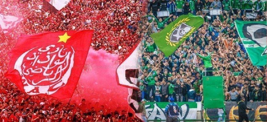 صورة مركبة لجماهير الوداد الرياضي والرجاء الرياضي في ديربي سابق (winwin)