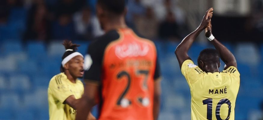 احتفال ساديو ماني بهدفه خلال مباراة النصر والرياض في الدوري السعودي 2026 (X \ AlNassrFC)