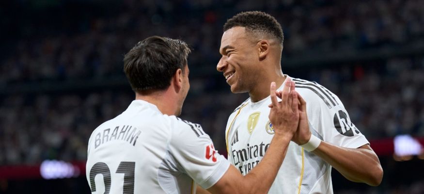 الفرنسي كيليان مبابي والمغربي إبراهيم دياز نجما نادي ريال مدريد الإسباني (Getty)
