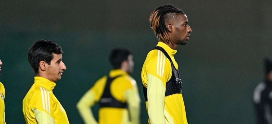 السنغالي سايدو سانو في تدريبات نادي الغرافة القطري (X/ALGHARAFACLUB)