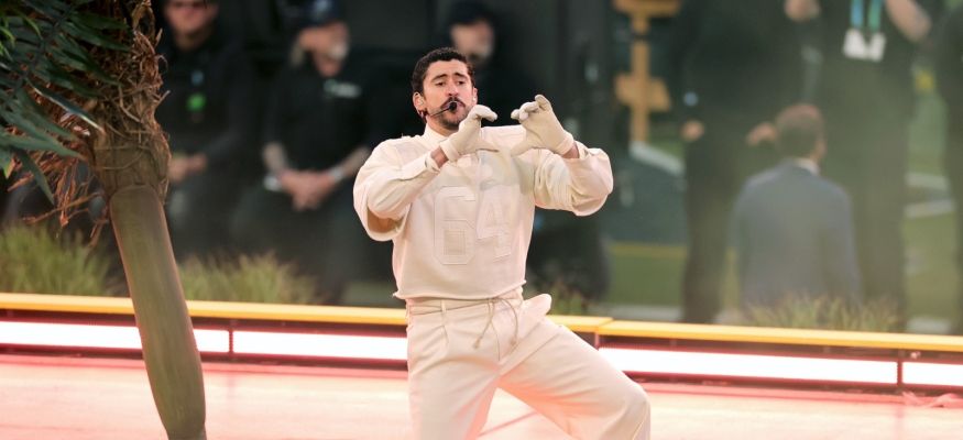 باد بوني قدم عرضًا مميزًا بين شوطي النهائي الذي يدوم نصف ساعة بمشاركة ليدي غاغا وريكي مارتن, قدم بوني أغاني تعزز الهوية اللاتينية وعدّد جميع الدول اللاتينية التي تشكل جزءًا من هوية الشعب الأميركي، وكانت رسائل الفنان واضحة وفيها المبطنة، مما أثار حفيظة المحافظين.