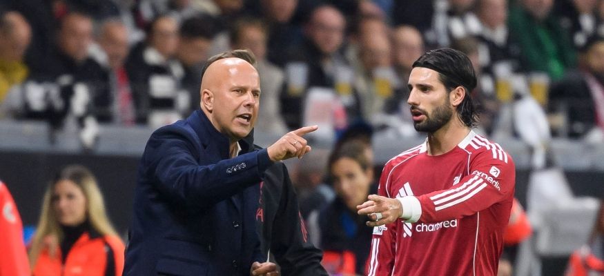 مدرب ليفربول أرني سلوت مع لاعبه دومينيك سوبوسلاي (Getty)