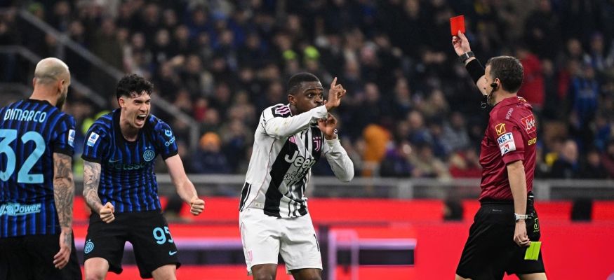 لحظة طرد لاعب يوفنتوس كالولو في مباراة ديربي إيطاليا ضد إنتر ميلان (Getty)