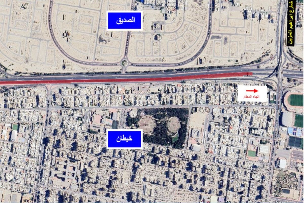 أعلنت وزارة الأشغال العامة، أنه سيتم بالتعاون مع الإدارة العامة للمرور، إغلاق الحارتين السريعة والوسطى على طريق الملك فيصل باتجاه المطار، بداية من تقاطع طريق الدائري الخامس إلى تقاطع شارع إبراهيم المزين، وذلك اعتباراً من فجر يوم غد الثلاثاء الموافق 2026/2/17 حتى 29 مارس المقبل. بحسب ما نشرته «الأشغال» عبر حسابها في منصة «إكس».