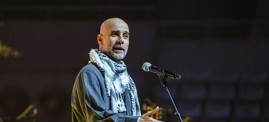 ارتدى غوارديولا مدرب مانشستر سيتي الكوفية الفلسطينية الشهيرة، واعتلى المنصة التي احتضنت الحملة الخيرية الداعمة لفلسطين، حيث ألقى خطابا قويا، جدد فيه مساندته لأكثر القضايا العادلة في العالم.